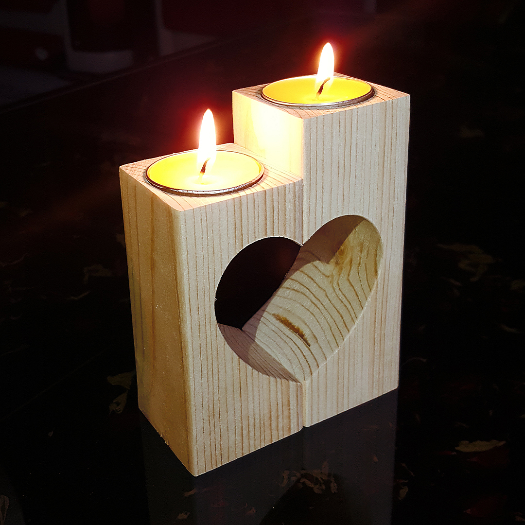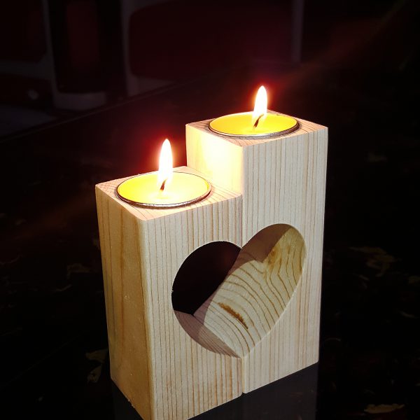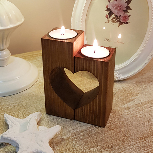 جاشمعی چوبی دوتایی طرح قلب