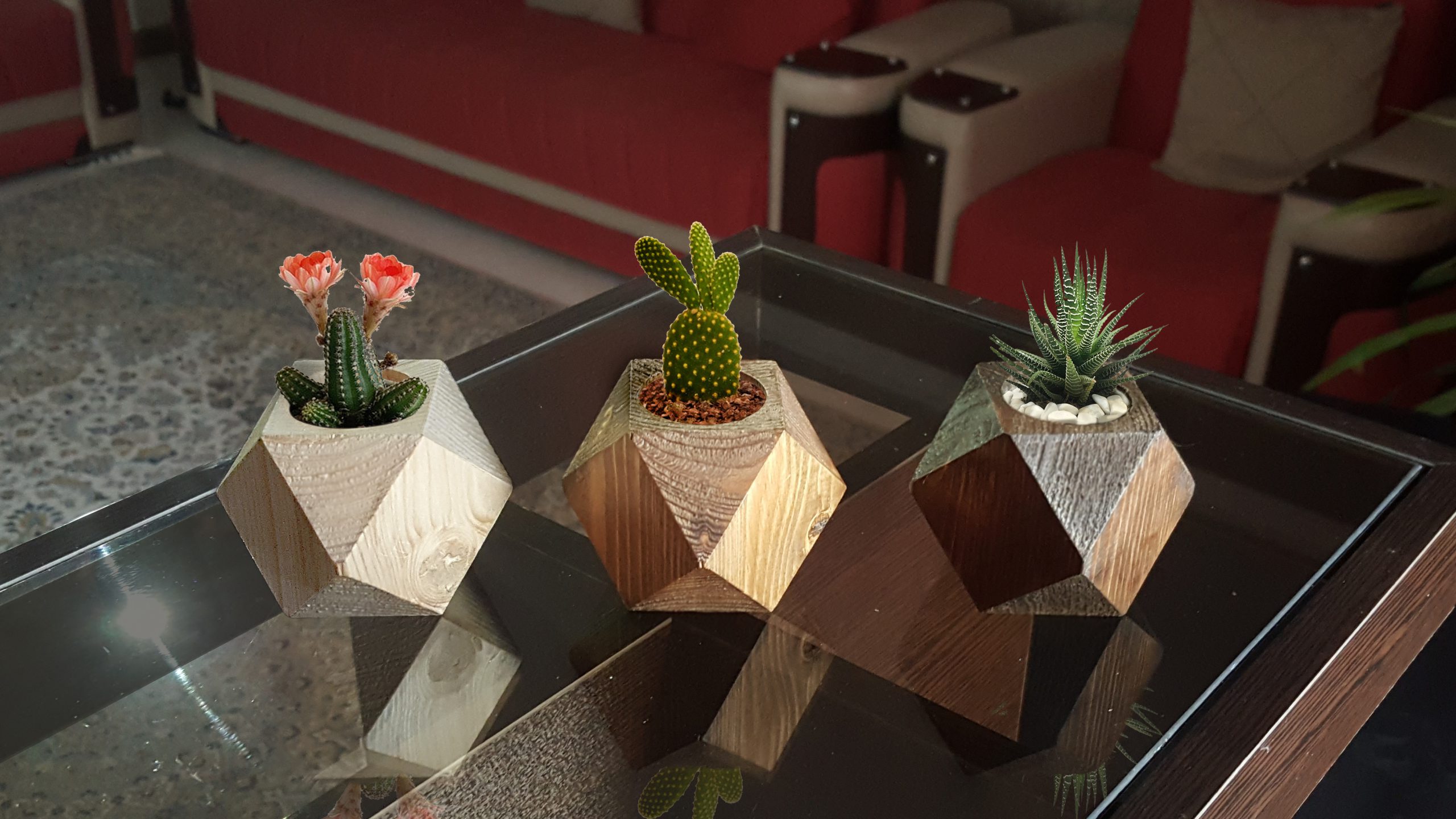 گلدان چوبی کاکتوس ، یک طراحی متفاوت با ظاهری زیبا و چشم نواز می باشد . زیبایی این گلدان چوبی در درجه اول به دلیل طراحی 14 وجهی است که بر روی دیواره خارجی محصول به صورت منظم ایجاد شده و سادگی ظاهری را از آن گرفته تا جلوه ای منحصر به فرد از یک گلدان فانتزی را پدید آورد . این محصول از جنس چوب مرغوب و با کیفیت در کلاس گلدان رومیزی تولید گردیده . درون گلدان چند وجهی چوبی حفره ای استوانه ای شکل با قطر و همچنین ارتفاع 3.9 سانتی متر ایجاد شده که از آن برای نگهداری گل های کوچک فانتزی نظیر کاکتوس می توان استفاده نمود . گلدان چوبی دکوری ، ارائه شده در سه رنگ قهوه ای روشن ، قهوه ای تیره و کرم می باشد که از آن می توان برای تزیین دکوراسیون منزل و محیط کاری ، بر روی هر میزی استفاده نمود تا ایجاد یک وجه تمایز را در محیط رقم زد .